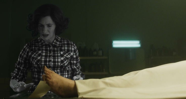 The series picks up roughly three years after Wanda trapped Agatha in her Agnes persona. Agnes now finds herself living out a bizarre, self-constructed true-crime fantasy, with the entire town playing along. In her mind, she’s stuck in a stereotypical small-town murder mystery. At some point, she even breaks character, offering sly observations that poke fun at the predictable tropes of true-crime dramas — like when she confidently asserts that the solution to the crime must lie in her small town, as is often the case in such stories.